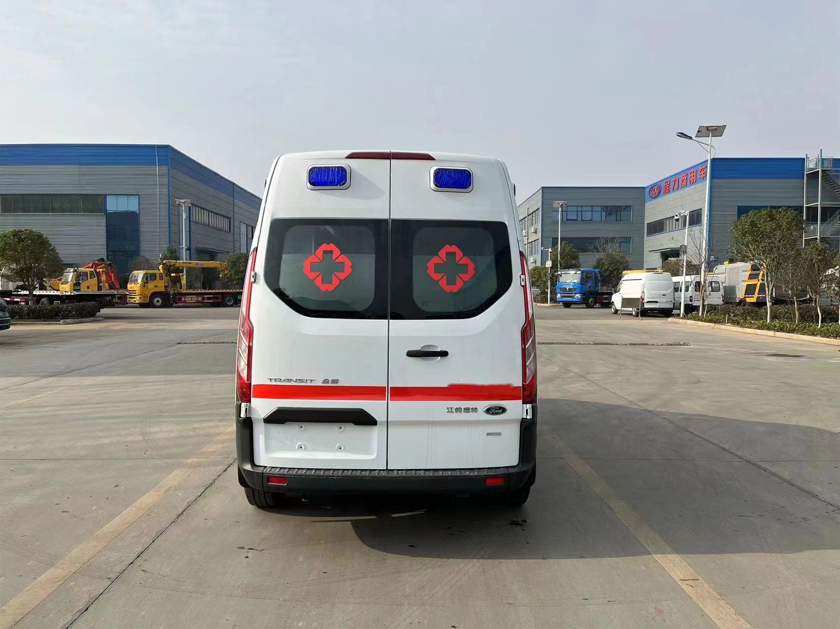 The Transit Guardian Ambulance is modified from Ford's new Transit Axial model introduced by Jiangling Ford. Ford 2.0TPumaTDCi diesel engine, equipped with a full range of active + passive safety protection system, speed up to 156km/h; Using Bosch version 9.1 ABS+EBD technology, it is possible to actively detect and analyze road conditions and reasonably adjust the driving direction; The use of domestic leading boron steel plate, high steel chassis integrated casting, multiple beams to increase strength; The overall body center of gravity is low and more stable, effectively ensuring the safety of the driver; The medical cabin has a large space and reasonable design; The whole vehicle adopts the leading medical vehicle modification technology in China, which is suitable for all kinds of hospitals and emergency centers, especially suitable for patient transfer and urban emergency treatment.