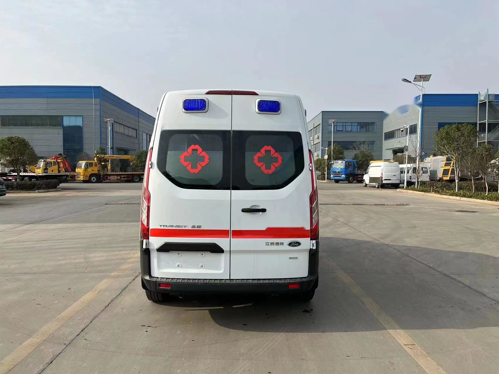 The Transit Guardian Ambulance is modified from Ford's new Transit Axial model introduced by Jiangling Ford. Ford 2.0T Eco Boost GTDI gasoline engine, equipped with a full range of active + passive safety protection system, speed up to 156km/h; Using Bosch version 9.1 ABS+EBD technology, it is possible to actively detect and analyze road conditions and reasonably adjust the driving direction; The use of domestic leading boron steel plate, high steel chassis integrated casting, multiple beams to increase strength; The overall body center of gravity is low and more stable, effectively ensuring the safety of the driver; The medical cabin has a large space and reasonable design; The whole vehicle adopts the leading medical vehicle modification technology in China, which is suitable for all kinds of hospitals and emergency centers, especially suitable for patient transfer and urban emergency treatment.