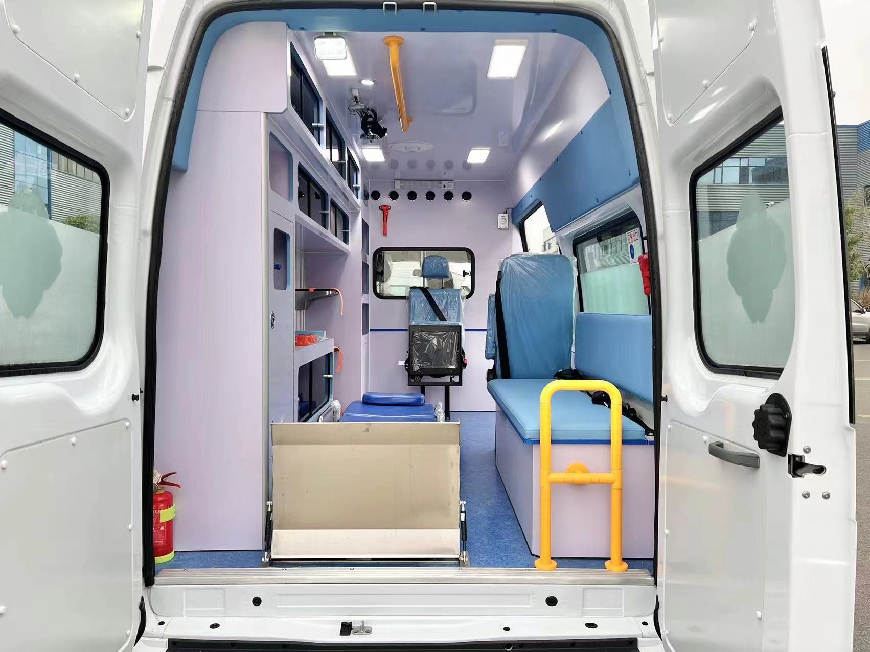 The New Generation PRO Long Axle Fuxingding Ambulance adopts the Ford New Generation Transit PRO Long Shaft Center Top (MT Model modifications. The model uses a Ford PUMA 2.198L diesel engine with a speed of up to 145km/h; With Bosch ABS+EBD+ESP, it is possible to actively detect and analyze road conditions and rationally adjust the driving direction. The car has a novel appearance, reasonable space design and rich configuration (soliciting the configuration of pre-hospital monitoring and the careful design of space requirements and suggestions from major hospitals). The whole vehicle adopts the domestic leading medical vehicle modification technology, including ambulance system, warning system, electrical system, etc., mainly used for health and family planning commissions at all levels, medium/large hospitals, and emergency centers at all levels for rescuing and monitoring the wounded and sick.