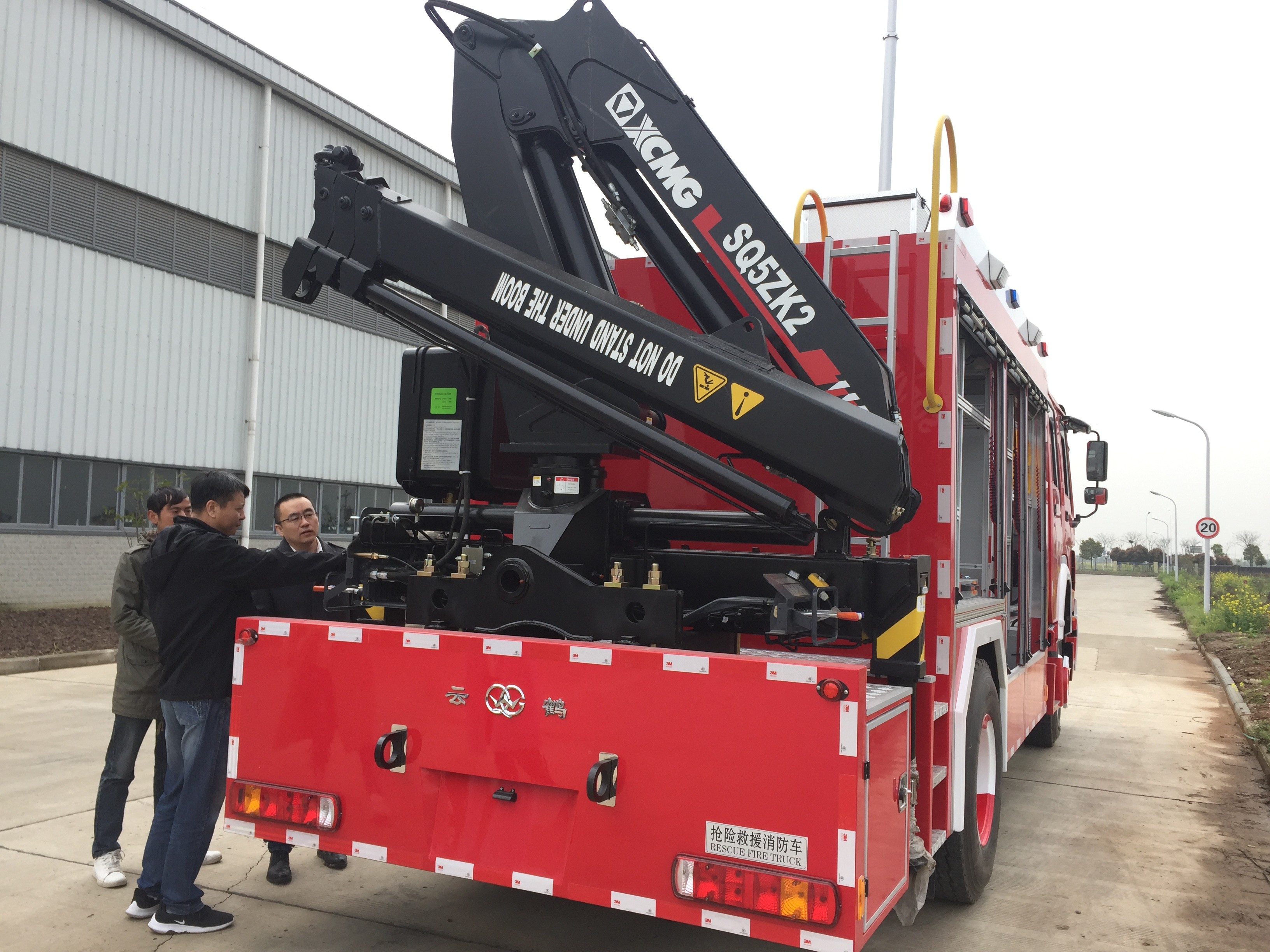 JY80 emergency rescue fire truck is equipped with the original U.S. champion electric winch N16800XF; it adopts Honda generator SHT11500; the roof is equipped with lifting lighting system YZH4-5.04CA; and the rear is equipped with a hydraulic truck crane SQ5ZK2 produced by XCMG. The equipment compartment adopts the structure of rotation and pulling, which has a high integration degree, and is convenient to use.